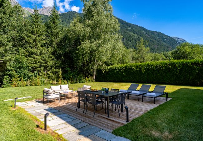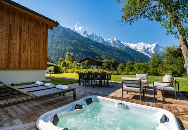 - Spacieux espace de vie ouvert avec portes vitrées donnant sur la terrasse pour les repas en plein air avec vue sur le Mont-Blanc